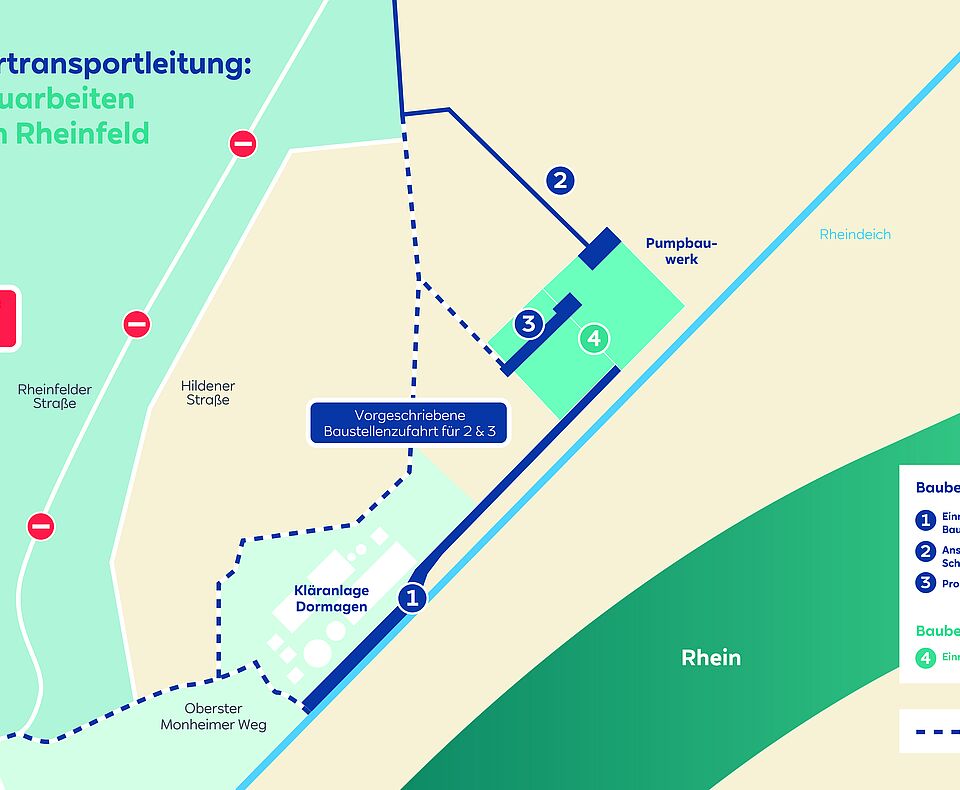 Für den Bau der Rheinwassertransportleitung startet RWE Power ab 2. März mit den Baumaßnahmen zur Errichtung des Pumpbauwerks in Rheinfeld.