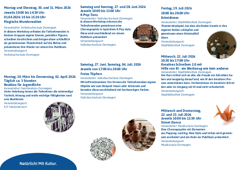 Alle Veranstaltungen werden vom Land NRW im Rahmen des Projekts Kulturrucksack gefördert.
