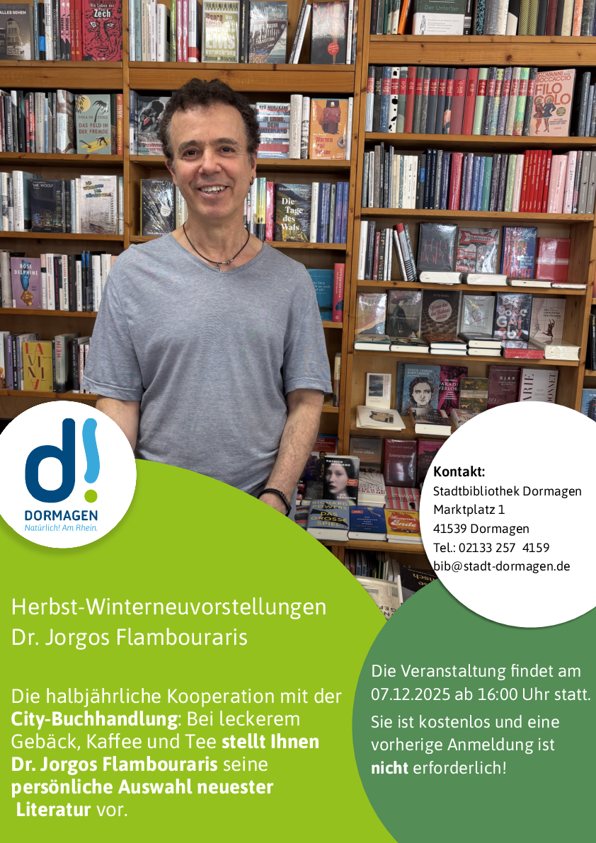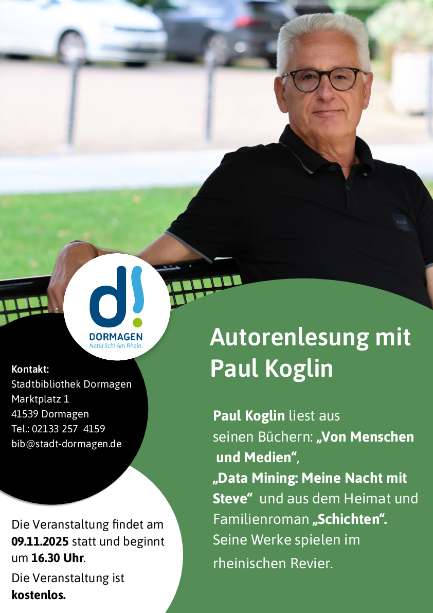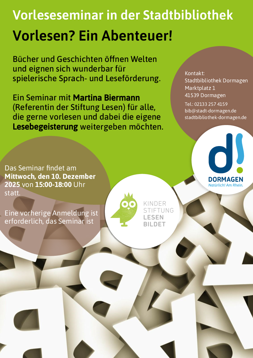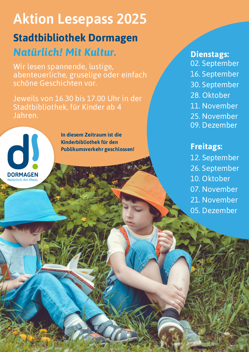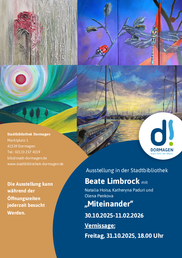 Weitere Informationen gibt es in der Stadtbibliothek Dormagen, Marktplatz 1, 41539 Dormagen sowie telefonisch unter 02133 257 4159 oder per Email an bib[@]stadt-dormagen.de.