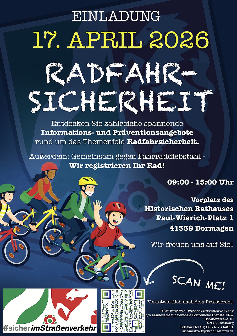 Am Freitag, 17. April, dreht sich in Dormagen alles um das Thema sichere Mobilität auf zwei Rädern: Von 9 bis 15 Uhr führt die NRW Initiative #sicherimStraßenverkehr mit ihren Netzwerkpartnern eine gemeinsame Aktion zum Thema Sicherheit für Radfahrende auf dem Vorplatz des Historischen Rathauses durch. In diesem Zuge schließt sich die Stadt Dormagen der NRW Initiative als Netzwerkpartner an und unterstreicht damit ihr Engagement für mehr Sicherheit im Straßenverkehr.
