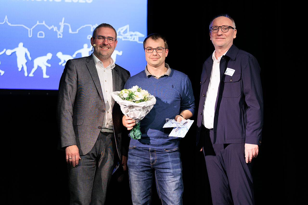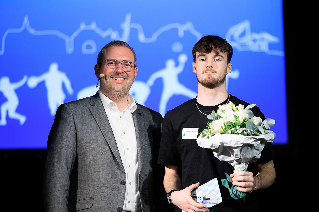 Eine besondere Rolle im Sport spielt auch das Engagement vieler Ehrenamtlicher. Mit dem Ehrenamtspreis wurden in diesem Jahr Frank Beyersdorf und Christian Hoven vom JC Nievenheim durch Laudator Klemens Diekmann, Geschäftsführer der evd, ausgezeichnet. Beide prägen seit vielen Jahren maßgeblich die Entwicklung des Judosports in Dormagen. Beyersdorf ist bereits seit 1973 im Judo aktiv und leitete lange Zeit die Judo-Abteilung, die zunächst bei der VdS Nievenheim angesiedelt war und sich 2018 als eigenständiger Verein JC Nievenheim gründete. 2021 übergab er den Staffelstab an Christian Hoven, der das Engagement seither fortführt. Gemeinsam stehen beide für die Werte ihres Vereins, der Angebote für alle Altersgruppen bereitstellt – von Selbstverteidigung und Gewaltprävention für Kinder bis hin zu Bewegungsangeboten für ältere Menschen.
